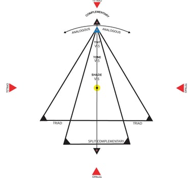 The indicator is a circular transparency attached to the base made out of clear mylar material that reduces the obstruction of colors while also point to the your selected color alongside their corresponding harmonious color schemes.