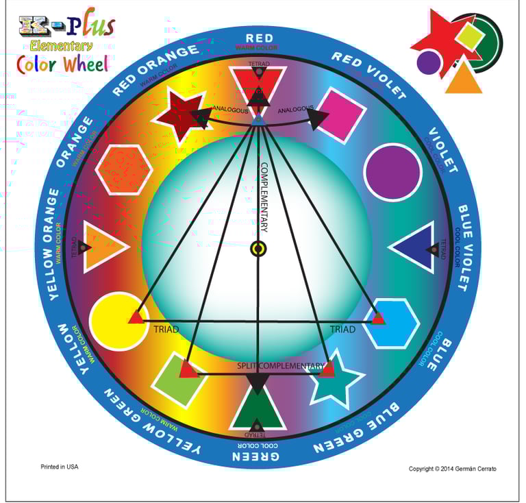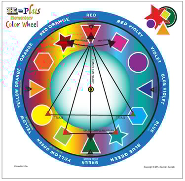 The K-plus Elementary Color Wheel (10x10 in) is designed for slightly older children who have outgrown being "little". This color wheel also incorporates geometry symbols, responding to popular requests from leading art educators.