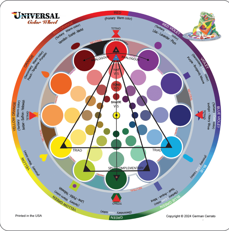 The Universal Color Wheel (6x6 in) is composed of two components: a base that organizes all colors in a circular format, and a transparent overlay that allows users to identify, isolate, and select specific colors for the study and development of harmonious color schemes. Learn more....