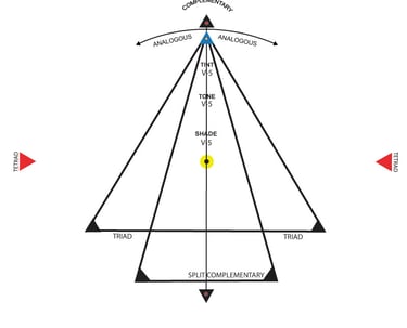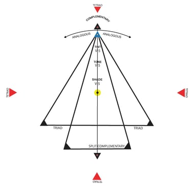 The indicator is a circular transparency attached to the base made out of clear mylar material that reduces the obstruction of colors while also point to the your selected color alongside their corresponding harmonious color schemes.