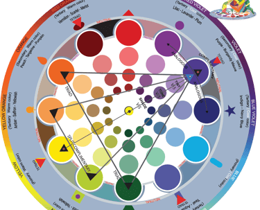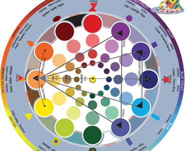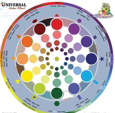 The Universal Color Wheel (6x6 in) consists of two parts: a base that arranges all colors in a circular design, and a transparent overlay that enables users to recognize, isolate, and choose specific colors for the analysis and creation of harmonious color palettes.
